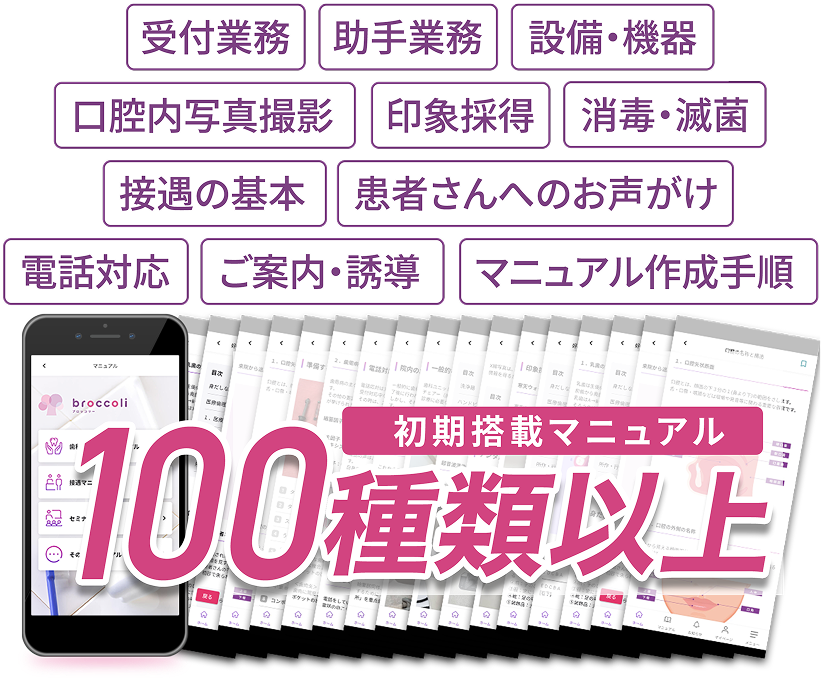 診療や接遇など100種類以上のマニュアルを初期搭載!