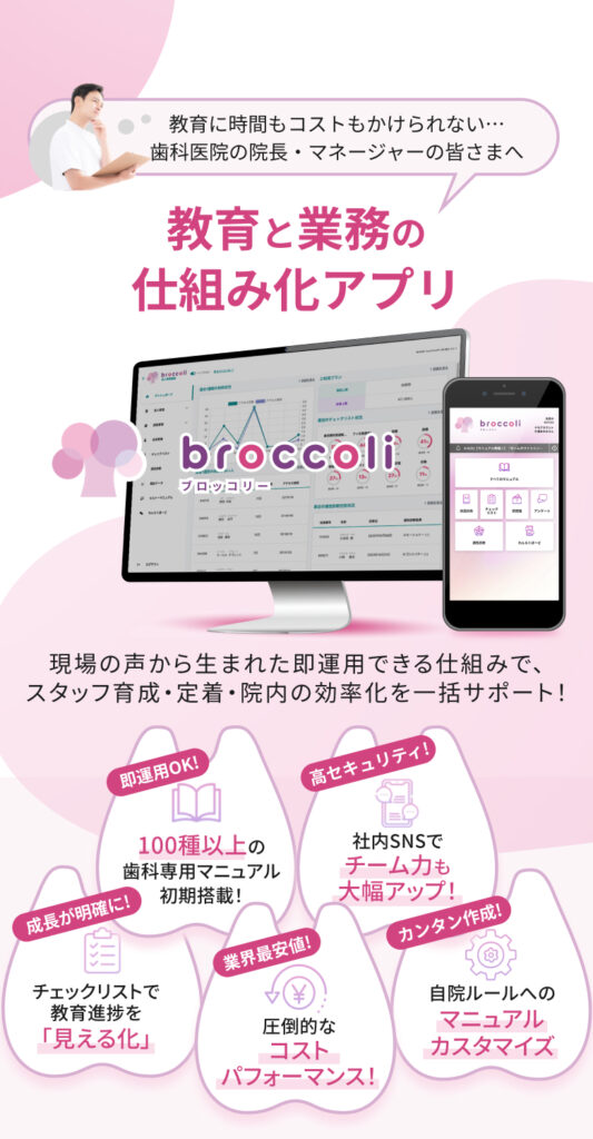 医院やドクターによって使う器具や機材、材料が違うから覚えるのが大変な歯科業界。broccoliなら、
