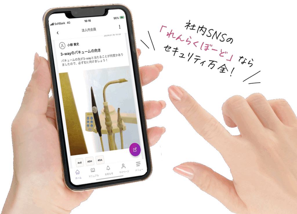 スタッフ間の情報共有や掲示板として活用できる、院内コミュニケーションツール。